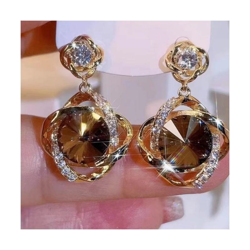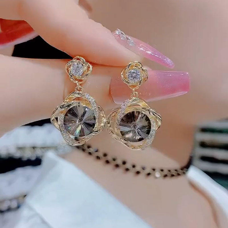 Luxury Fashion Jewelry Gold Plated Crystal Diamond Drop Pendant All-match Silver Needle Women Earrings